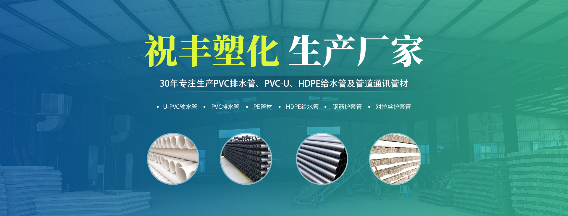安阳市祝丰塑化有限公司坐落在滑县工业园区,东临大广高速,西临京珠高速,是郑州、鹤壁、安阳、濮阳四个城市的输纽,交通便利、环境优美。 公司始建于八十年代,经过二十余年的艰辛创业,规模不断壮大,由十多万元资产的小厂,发展到现占地面积达一万多平,建筑面积一万平,资产2000多万元管材生产企业。公司生产PVC-U、PVC排水管、HDPE给水管、钢筋护套管管道通讯管材等产品,广泛用于农田节水、高山引水、人畜用水、建筑、电力通讯等多种用途,品种齐全。为了满足用户需求,可承揽各种给水、节水、灌溉工程?!白7崴芑逼窘枨烤⒌氖盗?,优良的管理水平?!耙灾柿壳笊妫孕庞蠓⒄埂钡脑蛉σ愿昂痛蠹夜餐茉烀篮梦蠢?。..